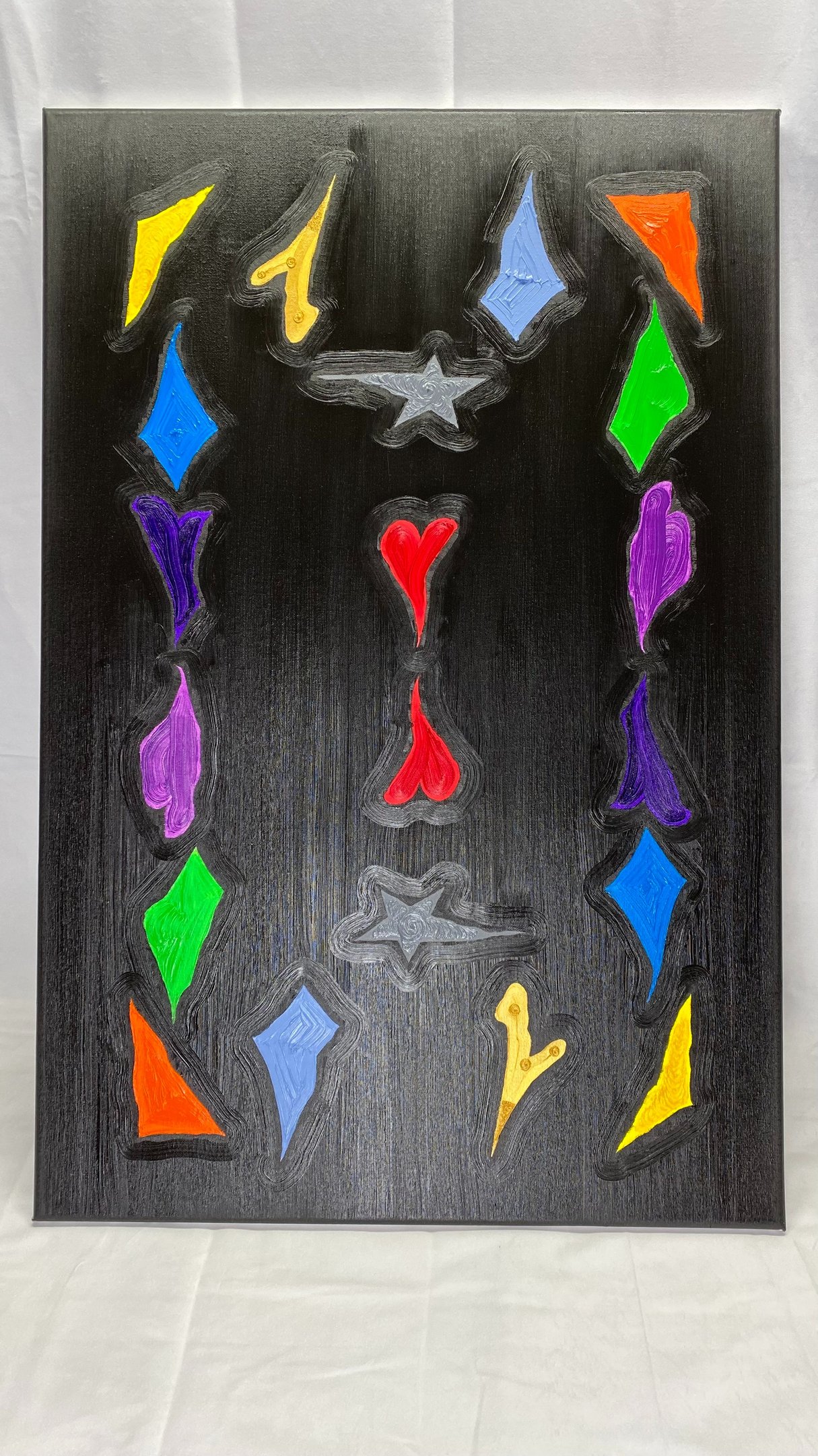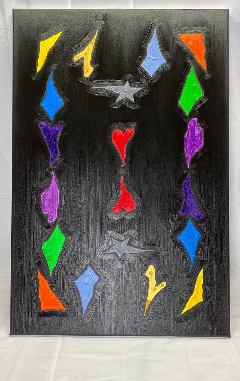 Sunthesis No. 1 is an abstract painting that captures the essence of the geometry of mixing colors thru the motions in a visual abstract way, blends vibrant colors thru geometry. The focal point of the composition is the history of color thru the human eye bleeding thru everyday life in a way that colors take the motions of geometry.